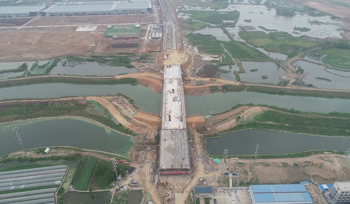 鸡笼山路大桥共计三联七跨,合计255米,大桥箱梁混凝土工程量7444.6立方米。第一、三联为等截面预应力混凝土连续梁,跨径组合为2*30米,总长120米;第二联为三跨变高预应力混凝土连续梁,跨径组合为3*45米,总长135米。项目建成后将对完善区域路网交通,改善投资环境,加快城市化建设具有重要意义。