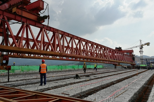 为确保T梁架设顺利完成,项目部科学组织,精心安排,按时申请安全质量监督部门对龙门吊及架桥机进行检查验收,对参加架梁的技术人员及施工队伍进行安全培训和技术交底。在保证施工安全质量的前提下加快工程进度,架梁过程中抓重点、保节点,指导现场运输、提升、架设工序转换,缩短工序衔接时间。现场技术人员跟班作业,各部门紧密配合,确保了梁板架设施工稳步推进。下一步项目部将根据工期目标,确保西山特大桥后续施工建设顺利进行。