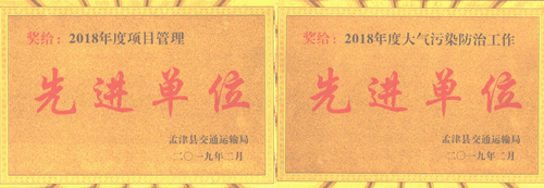 2月21日,在河南省孟津县交通运输局召开的孟津县2019年交通运输工作会议上,公司孟津县交通基础设施一期工程项目经理部荣获“2018年度项目管理先进单位”、“2018年度大气污染防治工作先进单位”荣誉称号。
